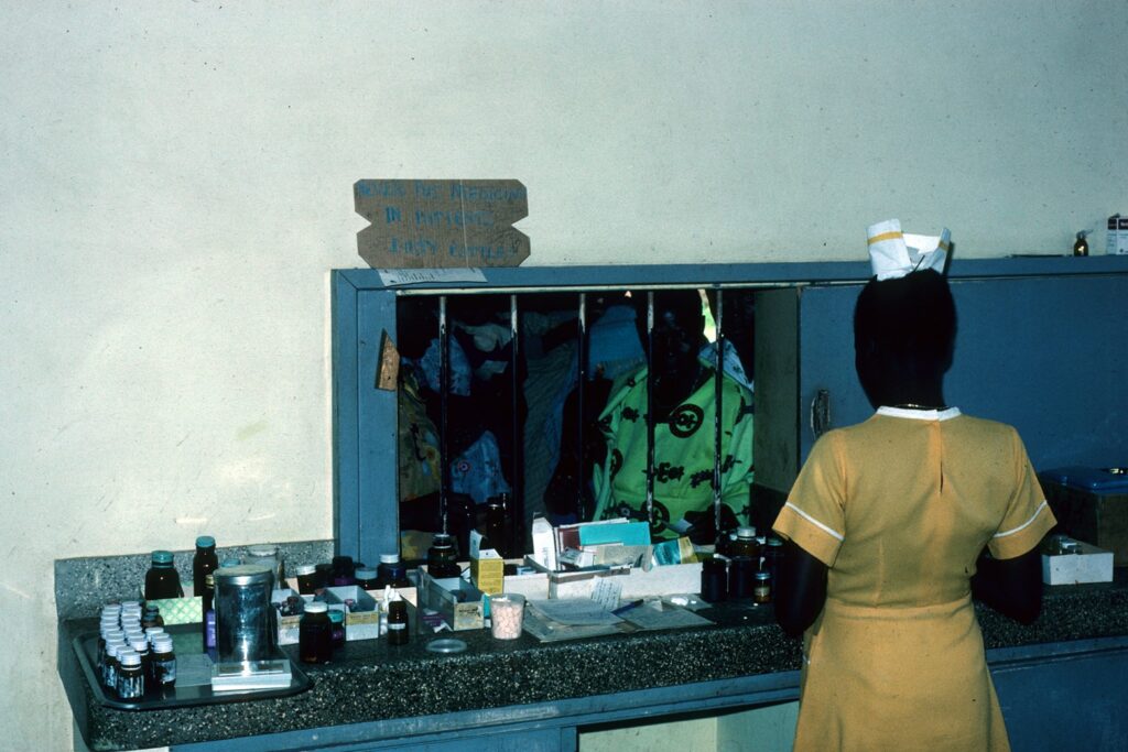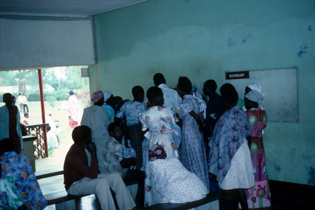 Na bezoek aan de polikliniek moest iedere patiënt medicijnen krijgen. Vaak grote drukte bij de uitgifte.