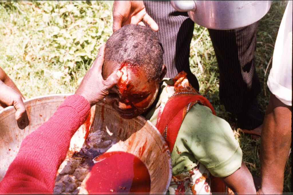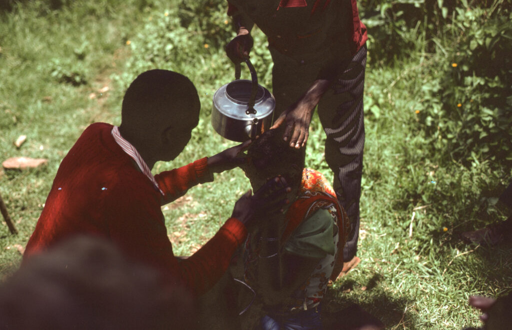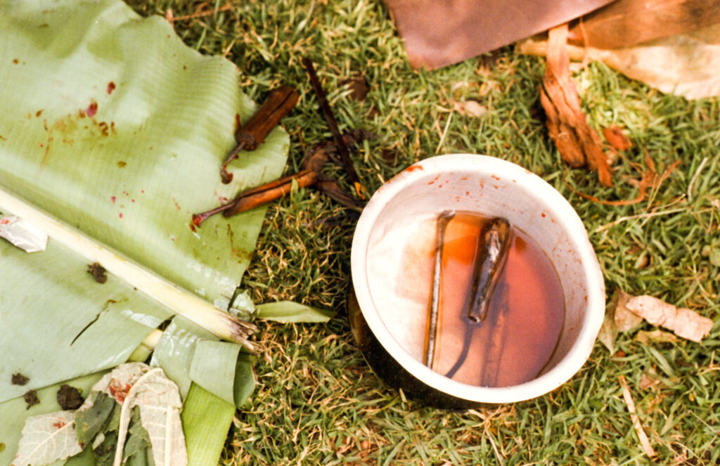 De patiënt was een vrouw van middelbare leeftijd die heel mooi aangekleed en tegen de zon beschermd door een parasol kwam aangelopen. De operateur was een wat morsige man die een aantal platgeslagen spijkers bij zich had om het bot weg te krabben, en een scherp mes om de huid in te snijden. De operatie gebeurt zonder verdoving. Af en toe wordt er wat zwarte pasta in de wond gesmeerd en daarna uitgespoeld met water. Op het einde van de operatie gaat de patiënt naar een aparte hut om bij te komen.